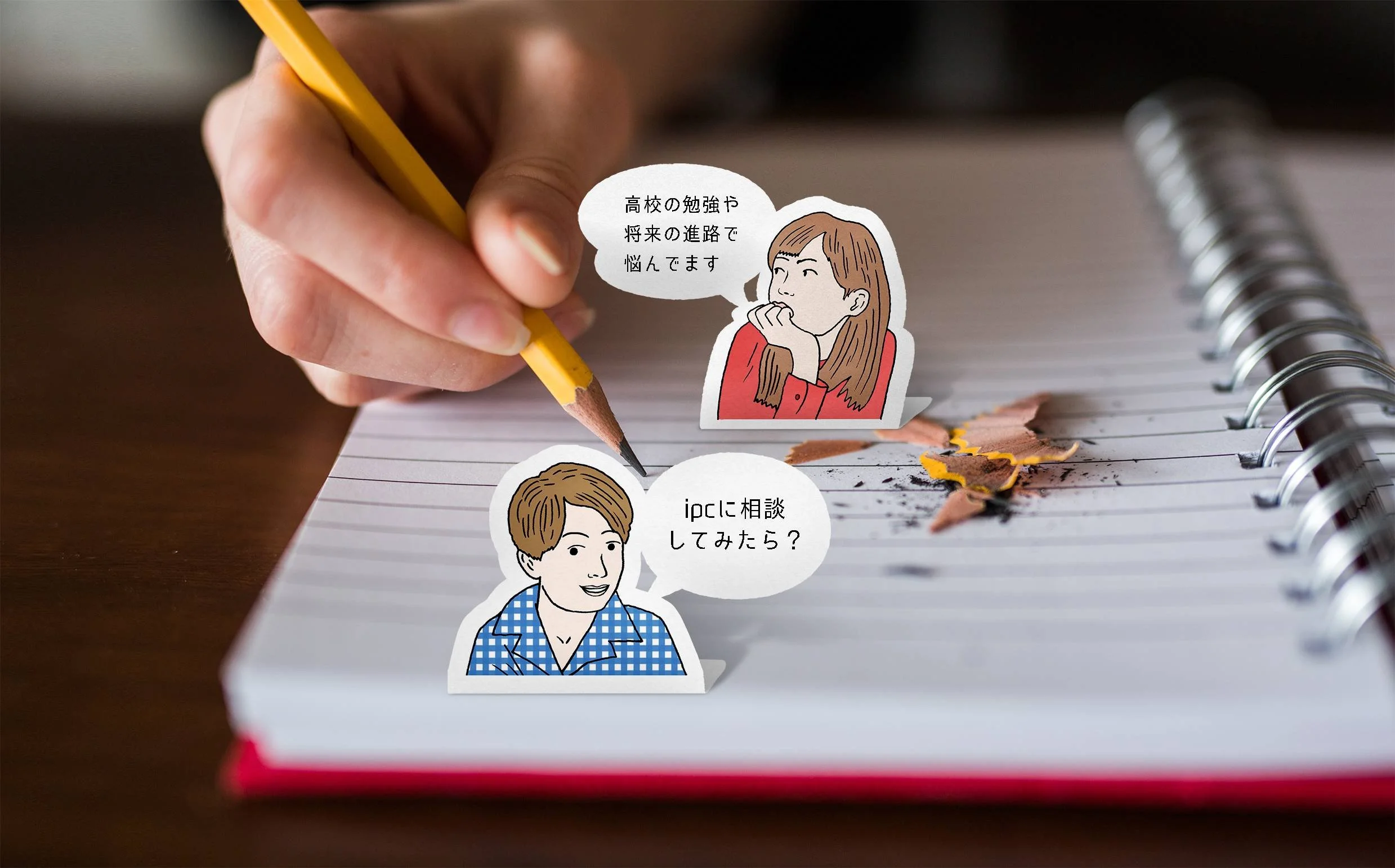 「一人で勉強を進められるか心配」「将来が不安で仕方がない」など、悩みがあれば、ipcのCom-Guideが全力でサポートします。何でも気軽に相談してください。たくさん、お話ししましょう。